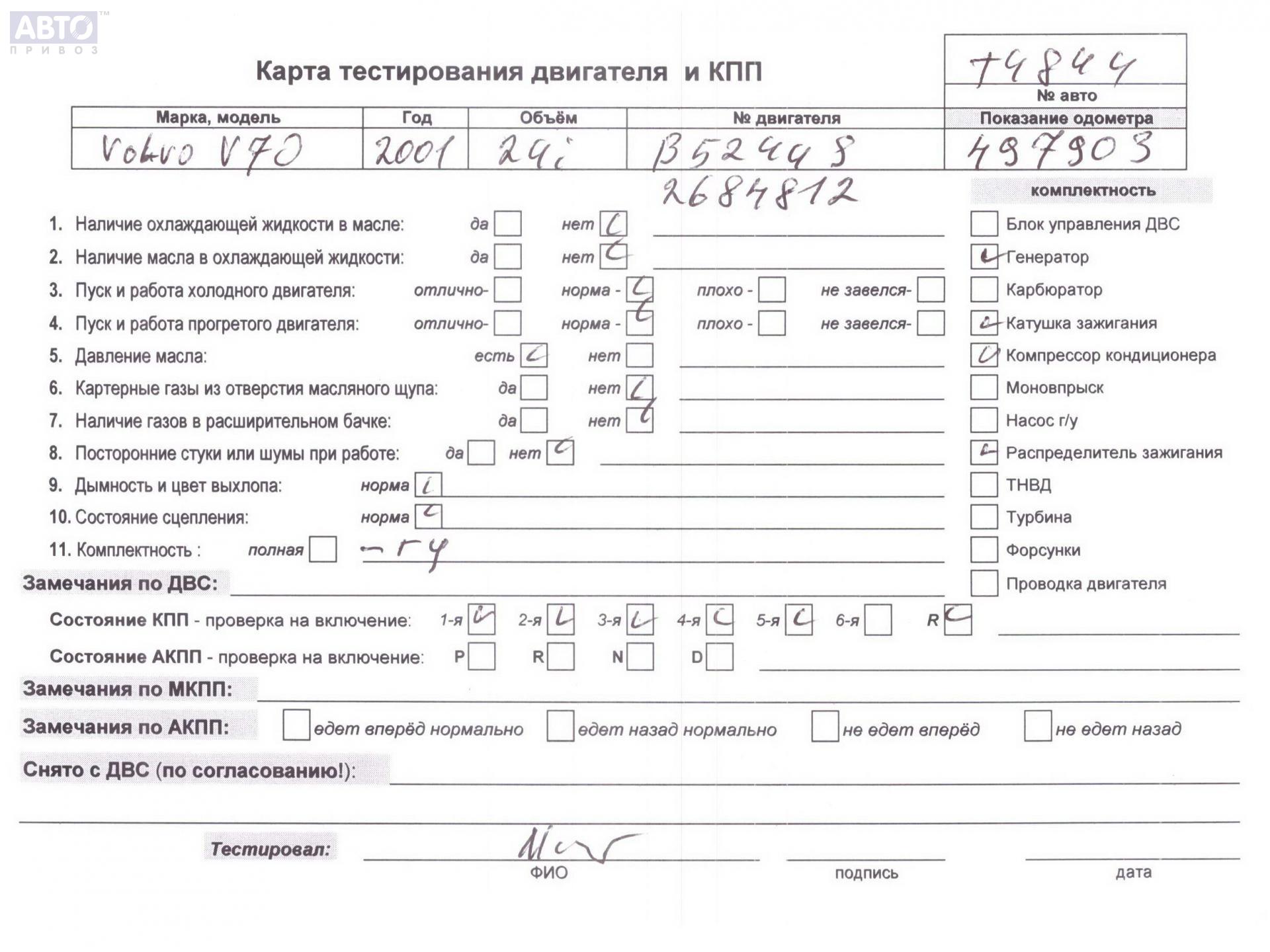 | Марка / Модель / Год: | Volvo V70 (2000-2007) 2001 |