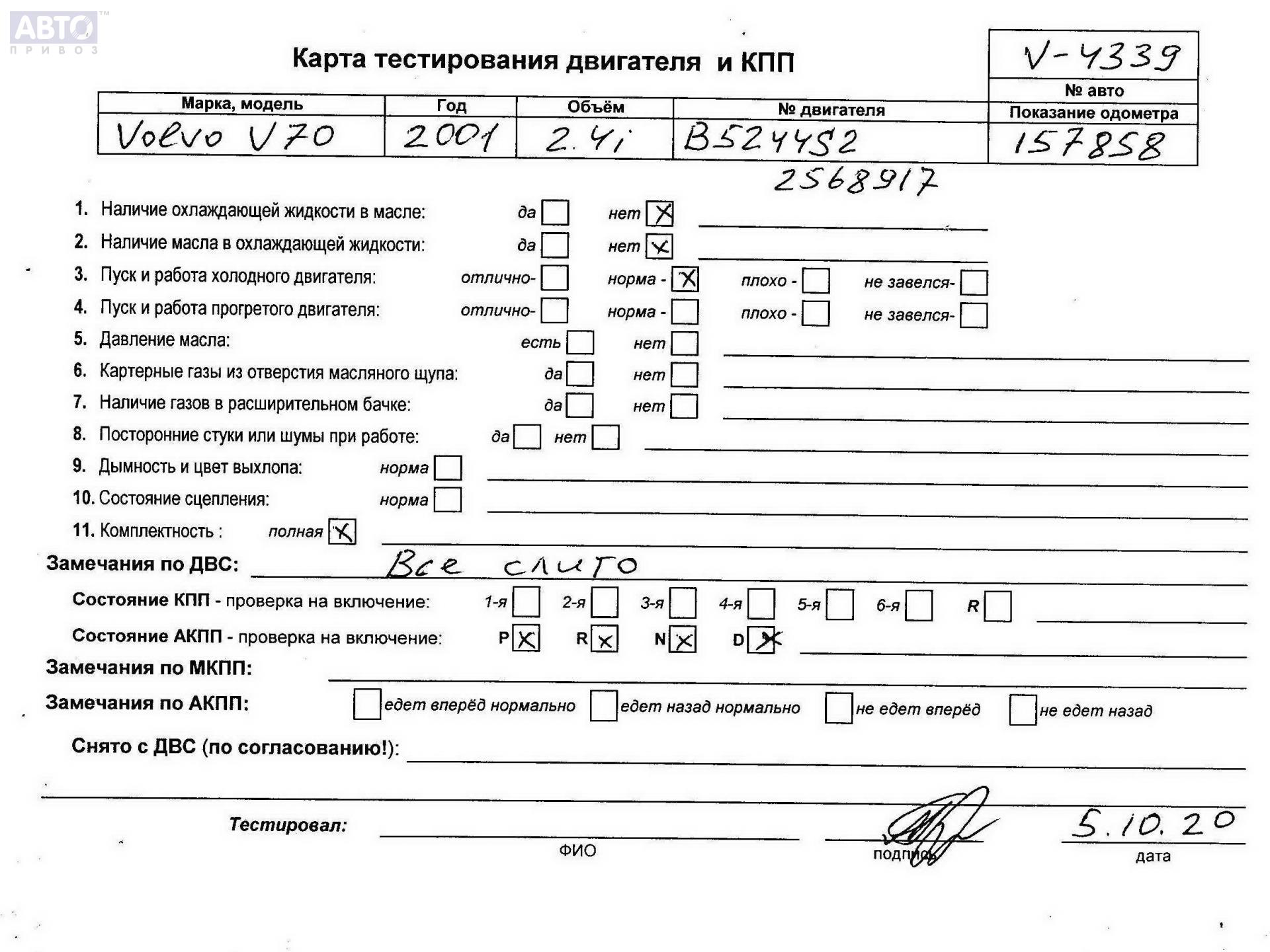 | Марка / Модель / Год: | Volvo V70 (2000-2007) 2001 |