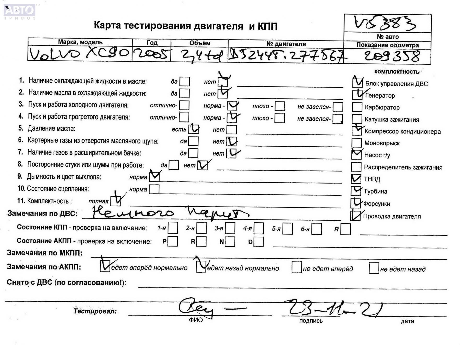 | Примечания: | (D5244T) болтается шкив, наличие дефекта |